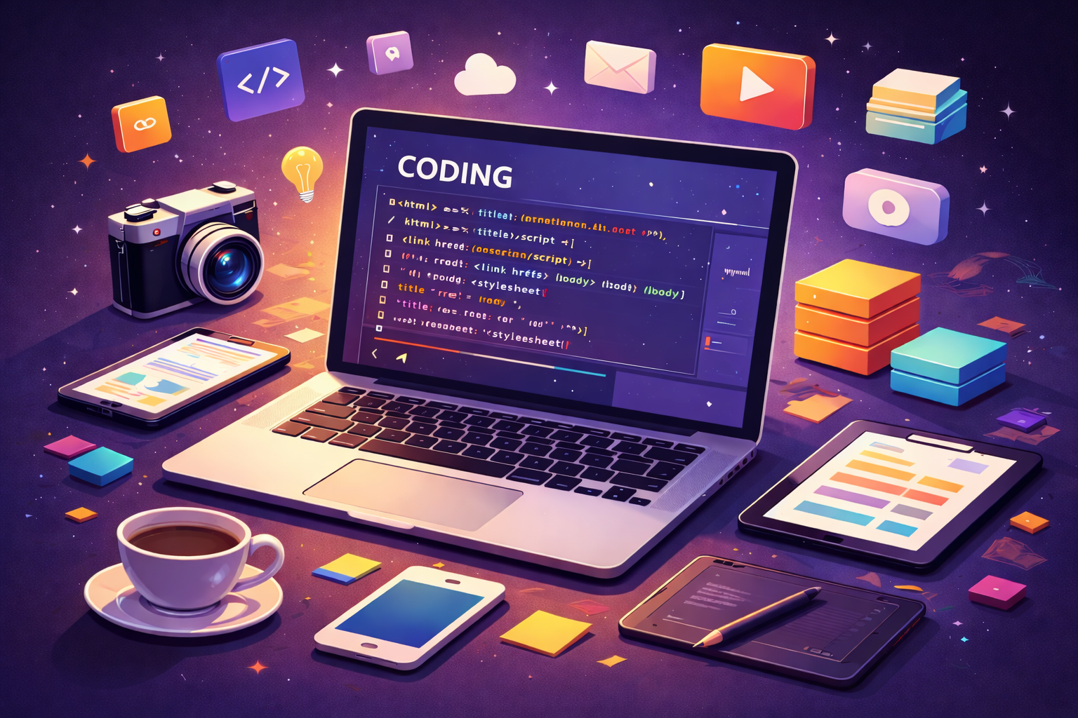 見出しや文章、画像などを適切なタグで整理し、SEOやアクセシビリティにも配慮したマークアップを行います。